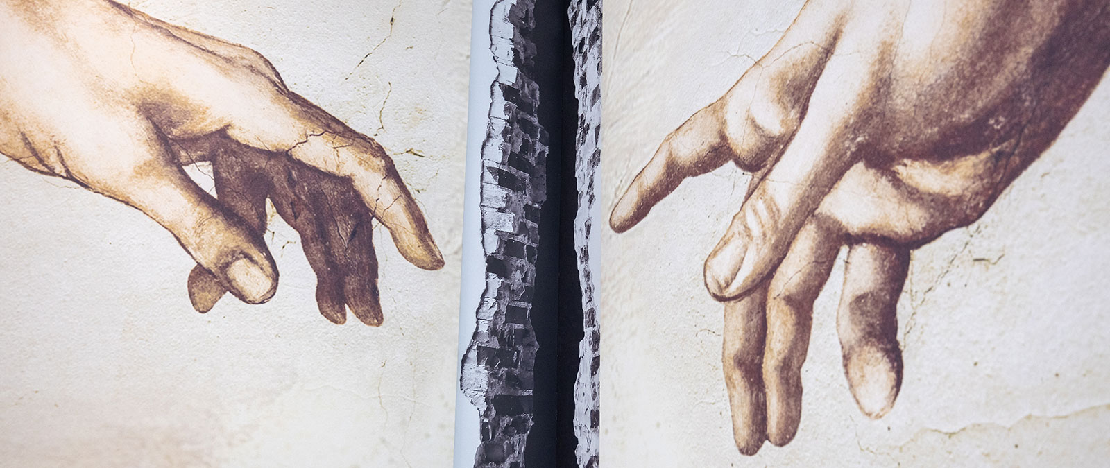 After the installation signed by Ugo Nespolo and the Wall of Cinema, a new part of this project was inaugurated on Tuesday, May 20: "The Time Line," a path marked by 52 stages that trace the fundamental moments of human communication from the mythical origins of the Tower of Babel to the Sistine Chapel in the first half of the 16th century.